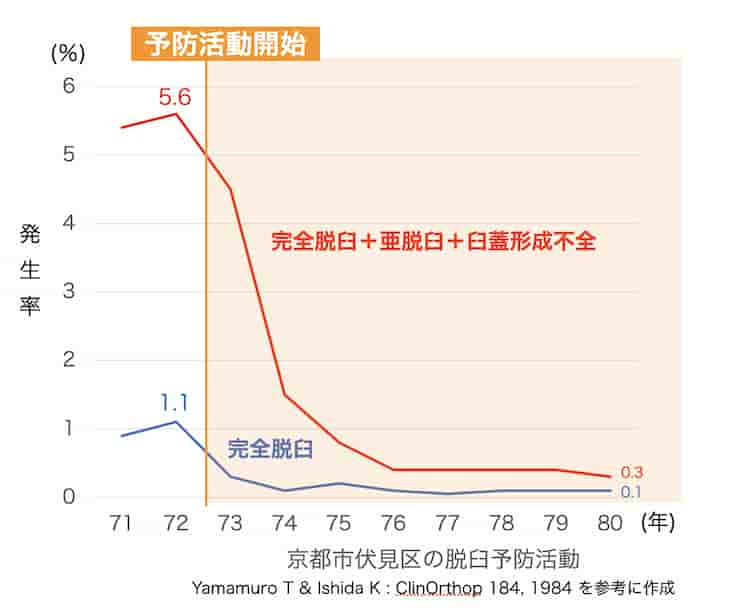 健診を受けても発見されず、歩行開始後に診断されて、牽引・手術で治療されている児が毎年100人もいるという事実は、今の日本のやり方に問題があることを示しています。
