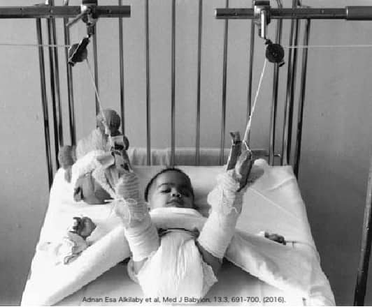 脱臼しやすい股関節で生まれてきた児が、間違った方法で育てられることによって、徐々に脱臼が進行します。出生時に脱臼していることは少ないので、最近は「先天性股関節脱臼」ではなく「発育性股関節形成不全」と呼ばれています。