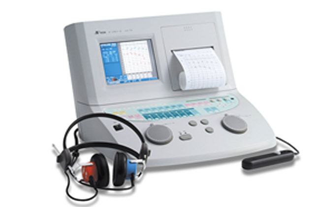 オーディオメーター:ヘッドホンから周波数ごとに音が聞こえたらボタンを押して測定します。簡便な機械ですが、こどもは検者の「これは聞こえるか」といった誘導や手の動きを見てボタンを押したり、ときには故意に自分の異常を悟られないためにボタンを押すことがあり、難聴を見逃すことがあるので注意が必要です。