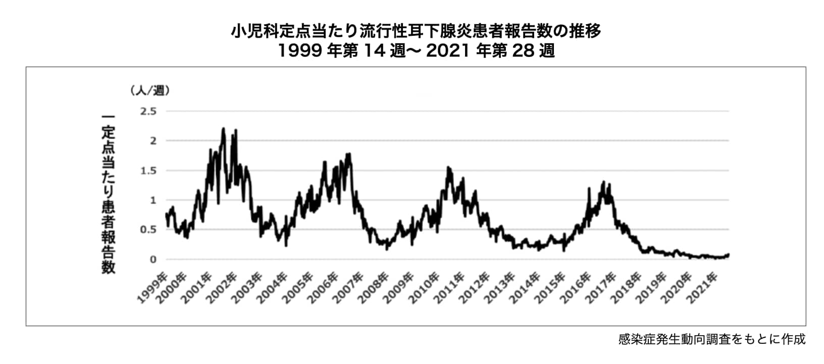 コロナの流行によって世界の感染症の状況は一変しました。ムンプスを含めた多くの感染症がほとんど姿を消してしまったのです。人の移動を制限したり、マスクや手洗いを徹底した結果でしょう。感染症が減ることは一時的にはいいことですが、免疫を獲得する人が減ってしまうことも忘れてはいけません。コロナが終息すれば、ムンプスは再流行すると思いますが、その時にはこれまでにないほどの大きな流行になって、多くの方がムンプス難聴になってしまうかもしれません。ムンプスが落ち着いている今のうちに、是非ワクチンを接種してコロナ後に備えておきましょう。小児科医としては、一日も早くムンプスワクチンが定期接種となり、ムンプス難聴が過去の病気になる日が来て欲しいと思います。